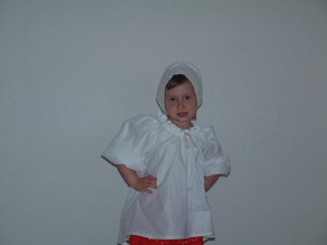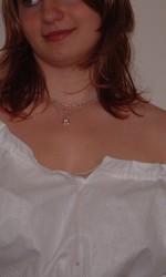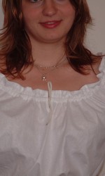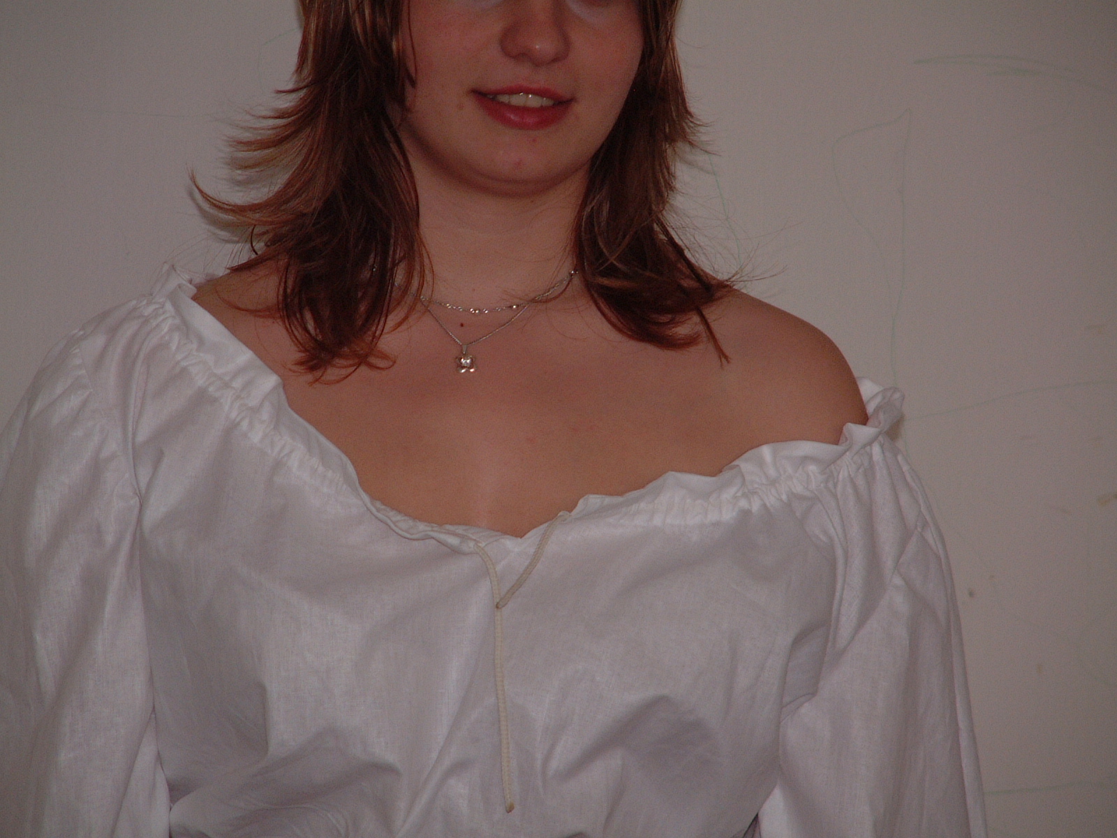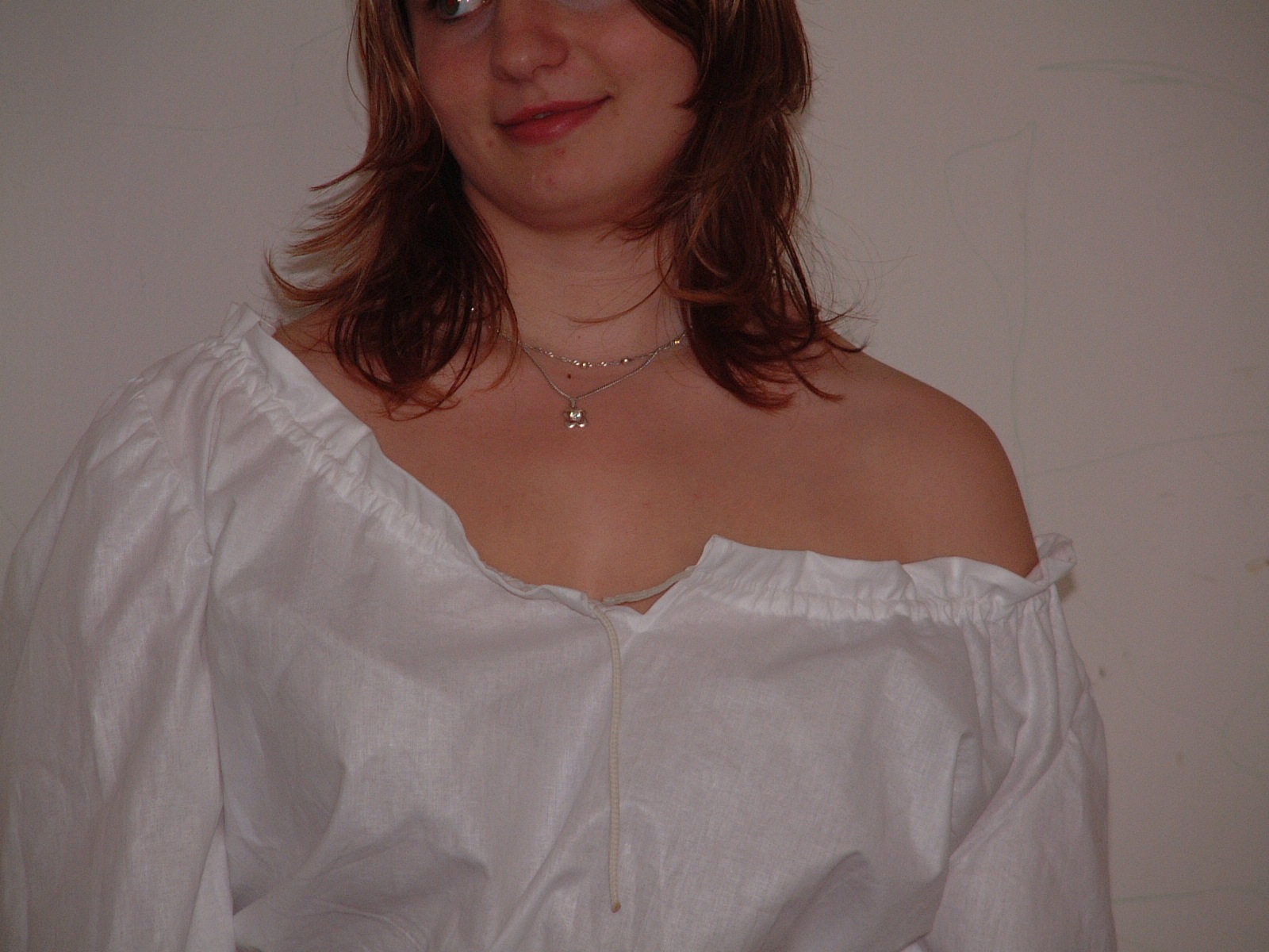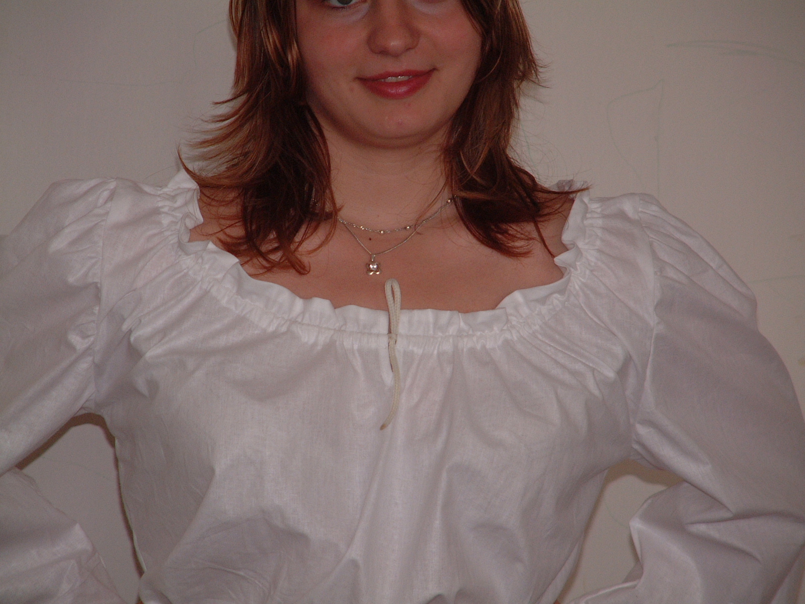 Dlouhá halenka, délka k bokům. U krku tunýlek na tkanici.