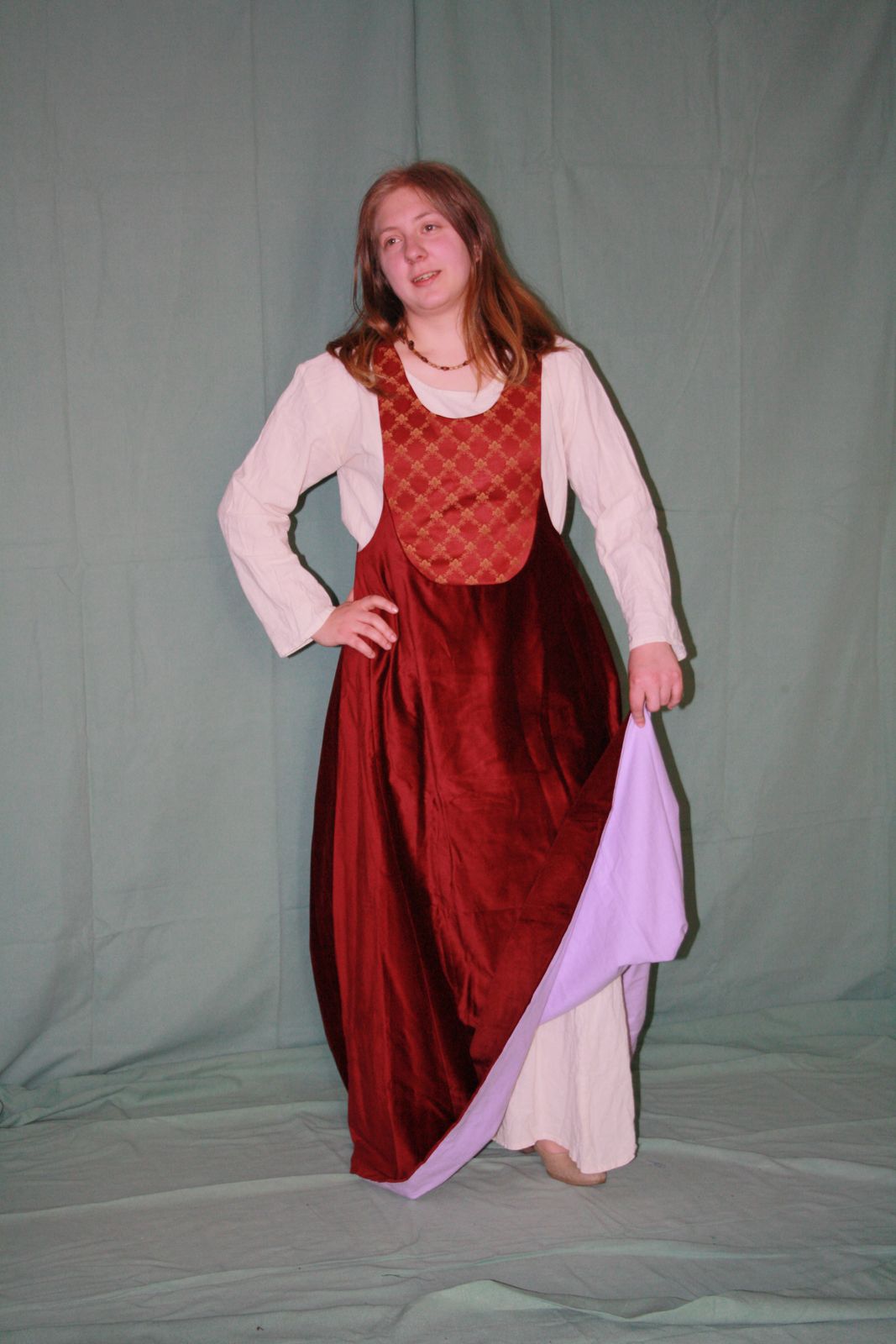 Šaty jsou ušity z bavlněného sametu, podšity bavlněným plátnem, stejné, či odlišné barvy.