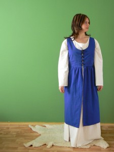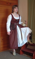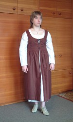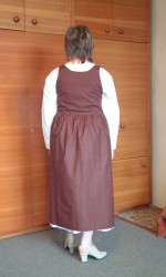 Šaty dělené v pase, se šněrováním na předním díle. Bez rukávů, bez spodničky.V pase řasená suknice nepodšitá. Živůtek je dvojitý. Jsou ušité z plátna, či jiné látky.