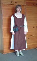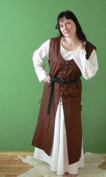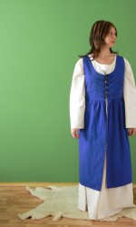 Šaty dělené v pase, se šněrováním na předním díle. Bez rukávů, bez spodničky.V pase řasená suknice nepodšitá. Živůtek je dvojitý. Jsou ušité z plátna, či jiné látky.