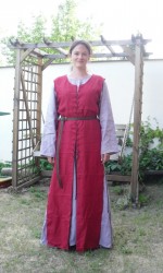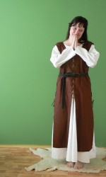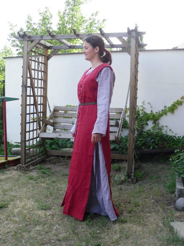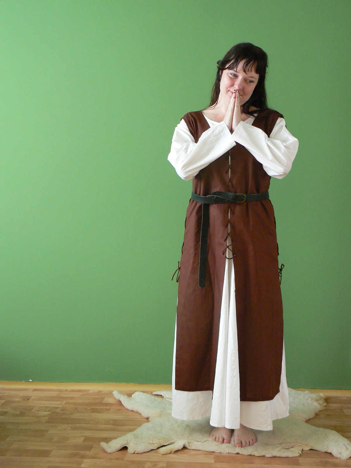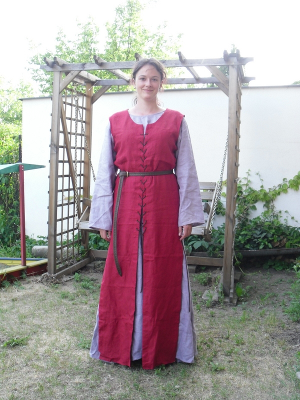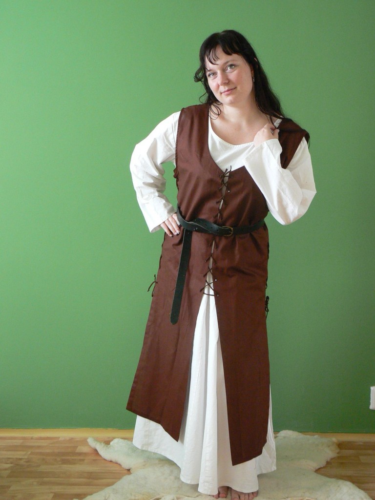 Šaty jsou rovné hladké, se šněrováním na bocích a na předním dílu, nepodšité, ušité z plátna, či jiné látky. Bez spodničky.