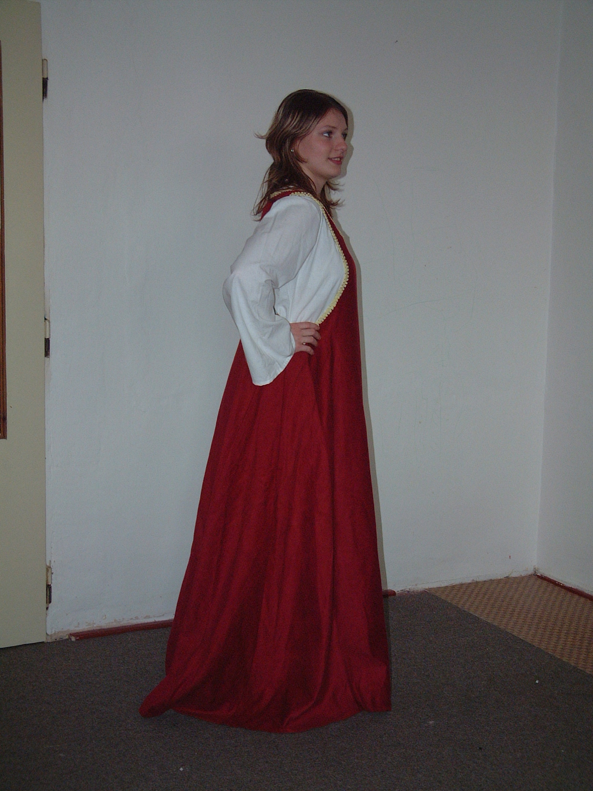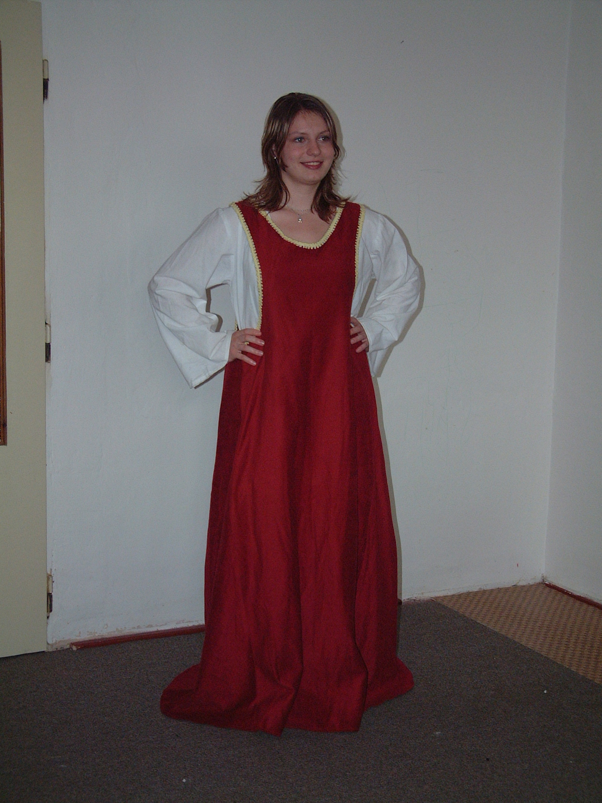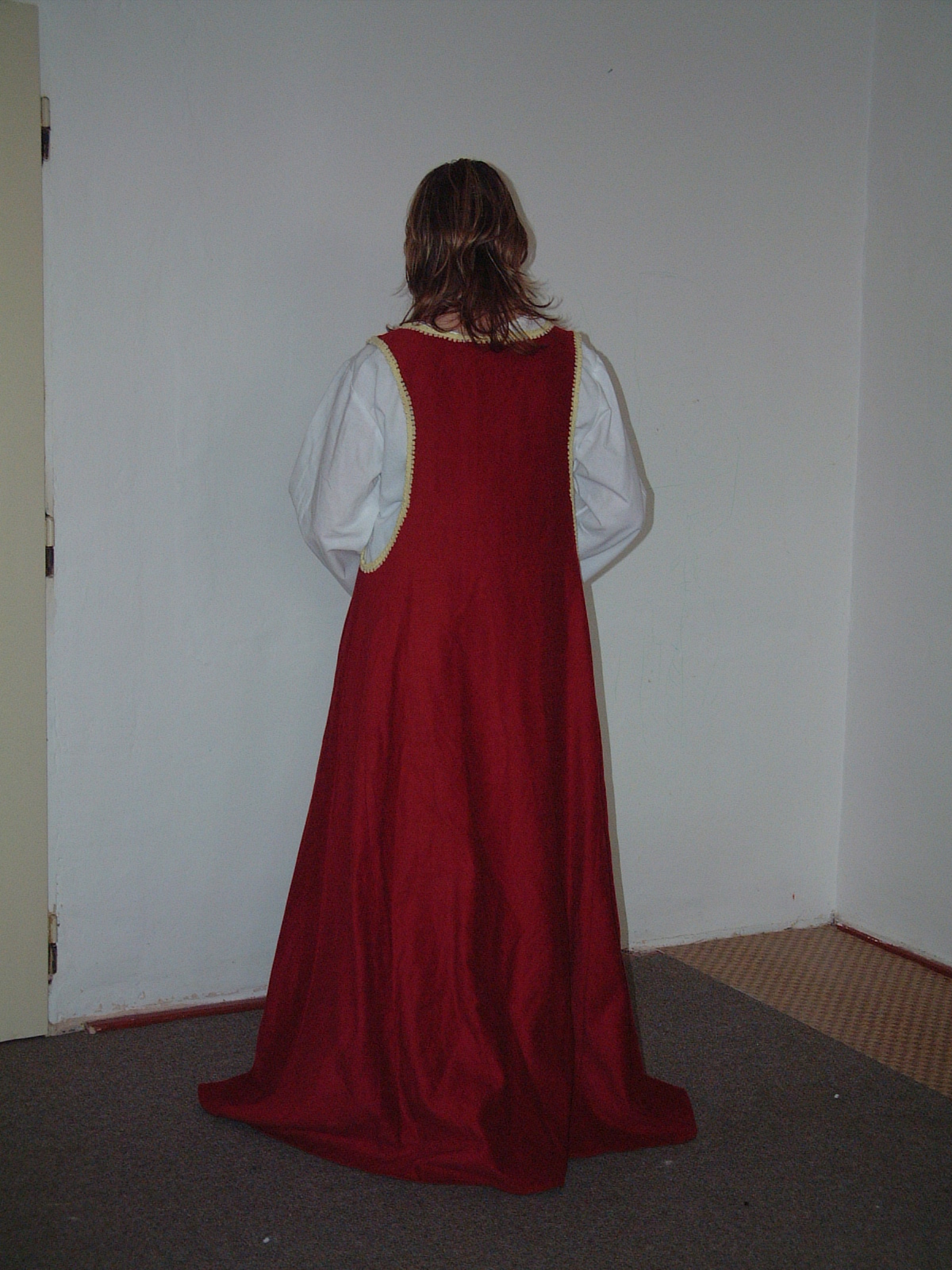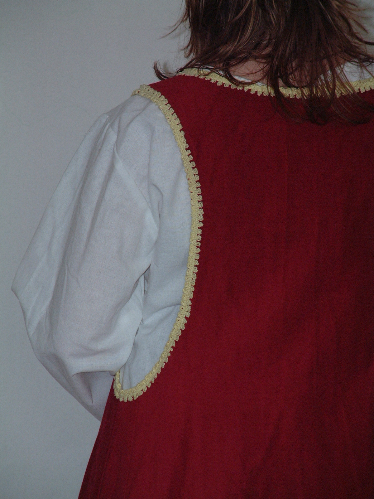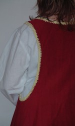 Surcotte je jednoduchý nepodšitý, bez spodničky. Je velmi jednoduše zdoben. Je ušitý z dyftýnu, je možné jej po dohodě ušít z jiné látky, či podšít.