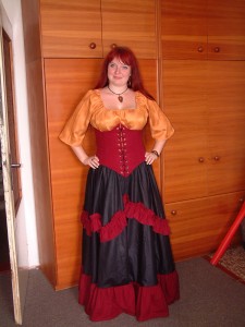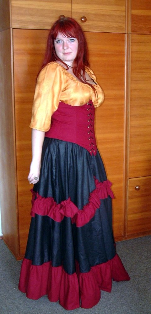 Suknice 1/2kolová, v délce kanýr, v pase na tkanici.