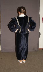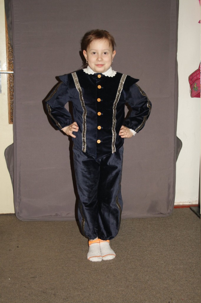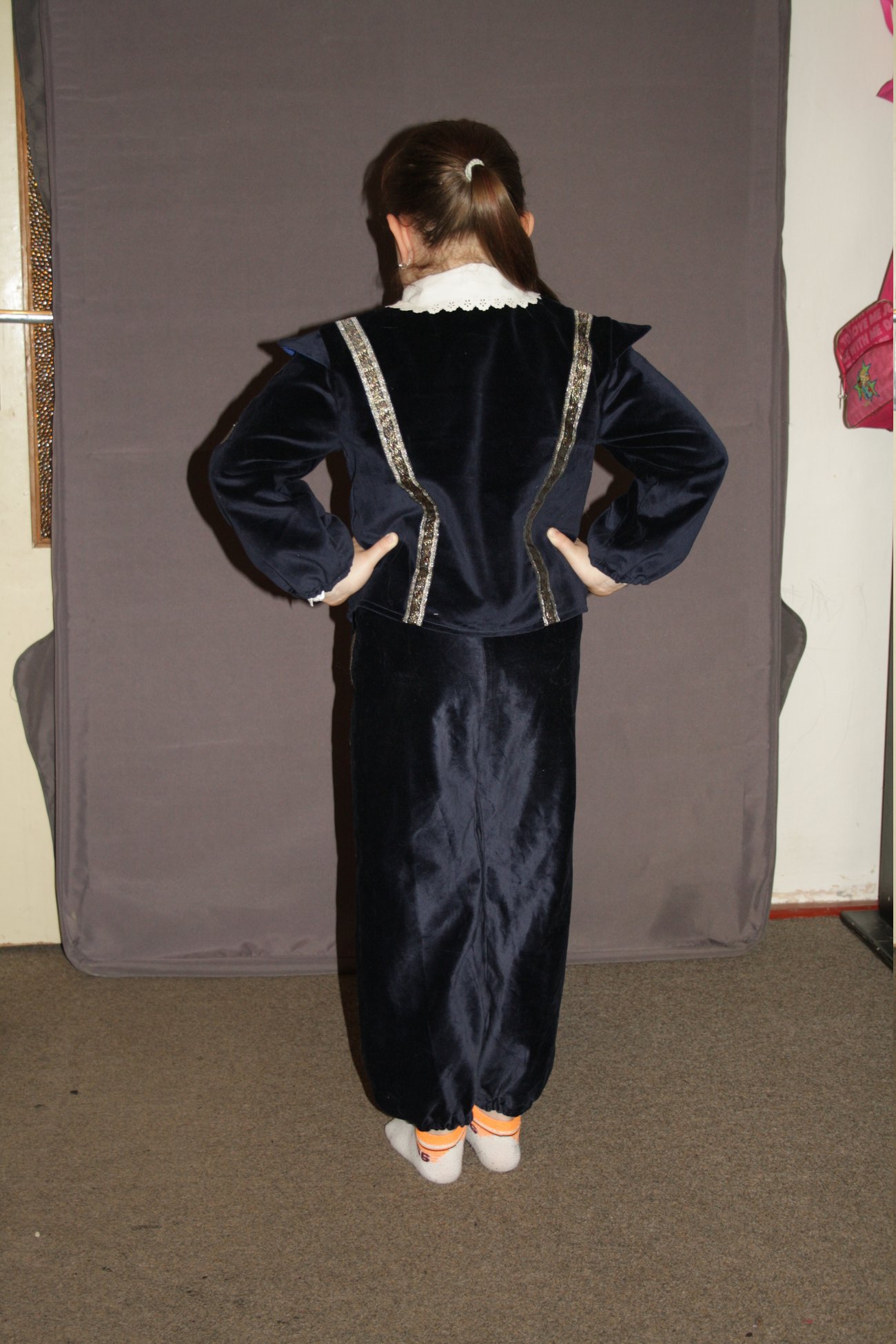 Vše je ušito z bavlněného dyftýnu nebo sametu s ozdobnou prýmkou na bocích. Zapínání na knoflíky. Kalhoty do gumy, či na tkanici.