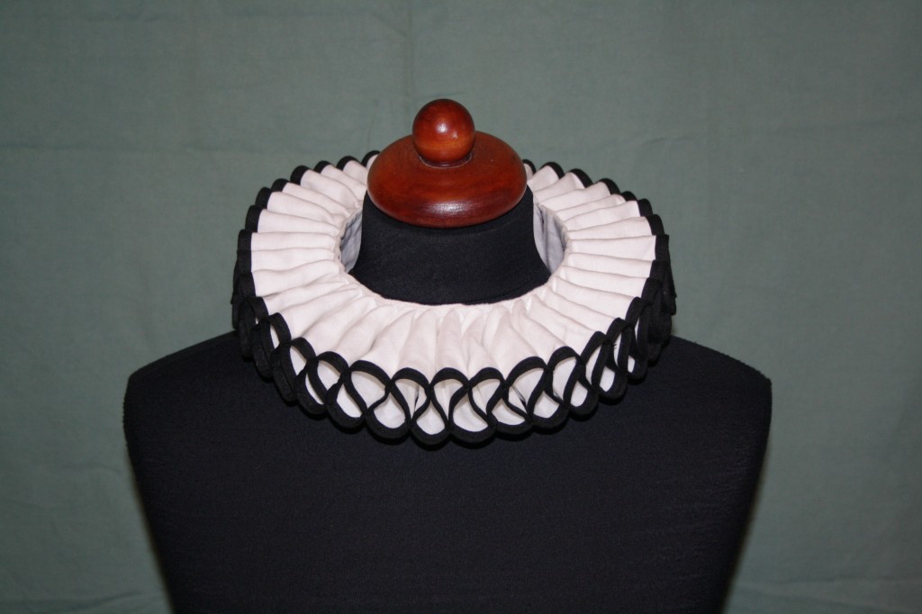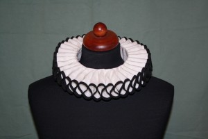 Okruží je ušito z jemné lněné tkaniny. Ozdobeno stříbrným, zlatým, nebo barevným proužkem.