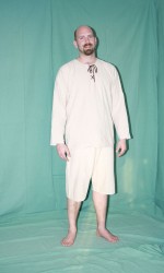 Pánské spodní prádlo. V pase na tkanici, s dírkami pro upevnění nohavic.