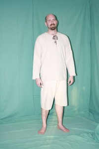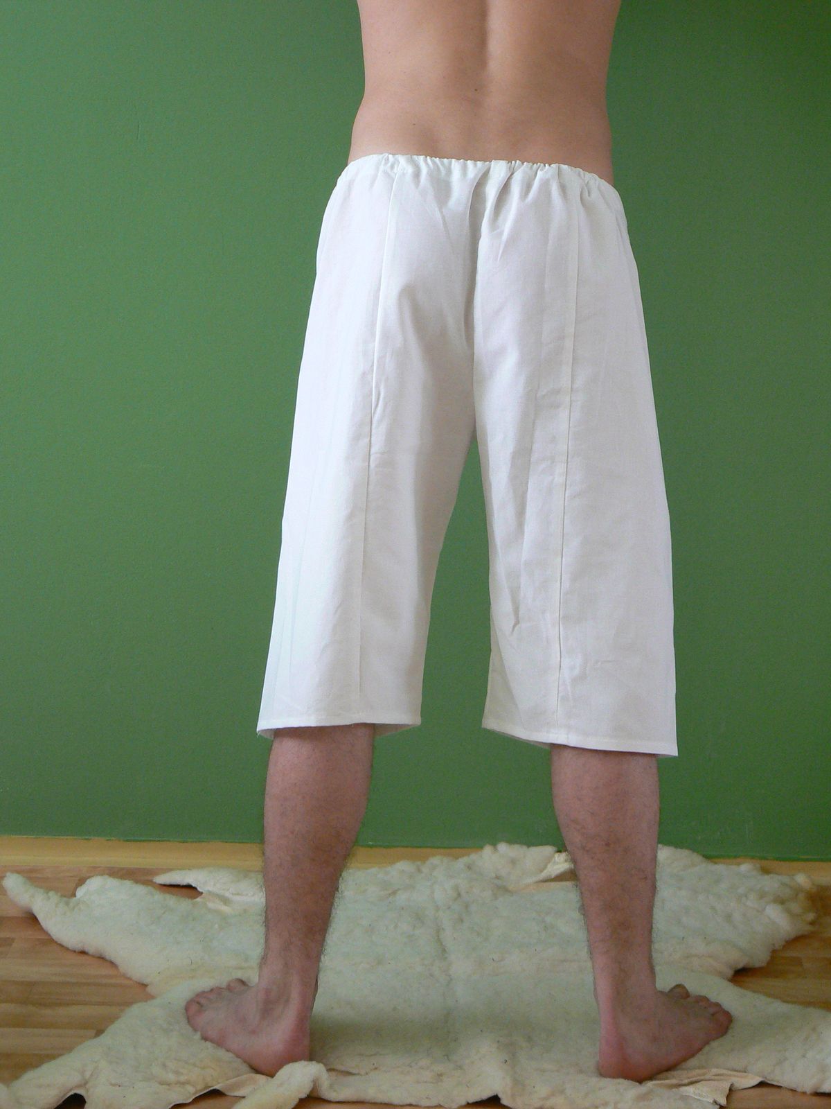 Pánské spodní prádlo. V pase na tkanici, s dírkami pro upevnění nohavic.