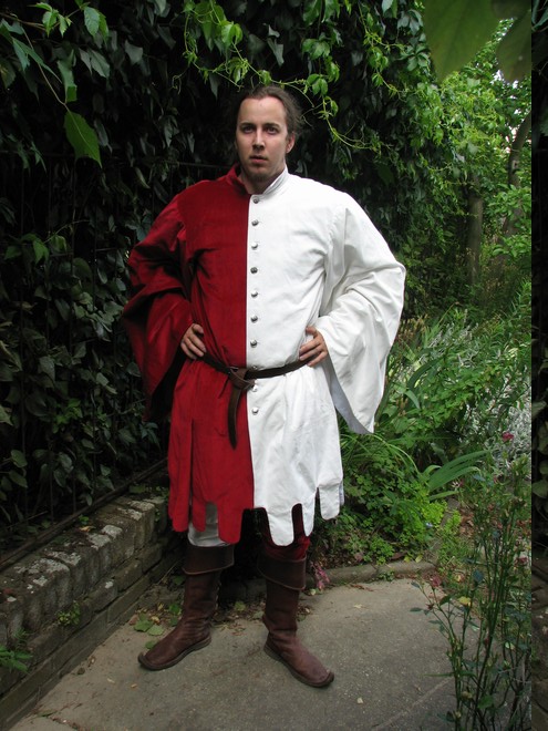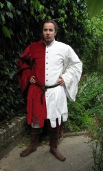 Pánský kostým podšitý, tvarovaný. Na předním dílu zapínání na knoflíky. Součástí kostýmu je vrchní díl, košile, nohavice a kápě.Materiálem na podšívku je bavlněné plátno. Pokud si nepřejete některý díl kostýmu, budou počítány samostatné díly kostýmu.