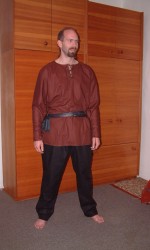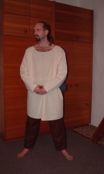 Košile se šněrováním u krku.Ušitá je z bavlněného, či lněného plátna.