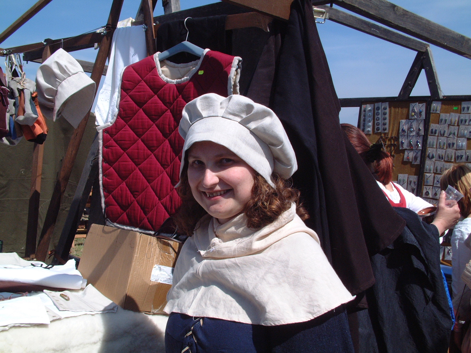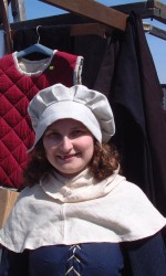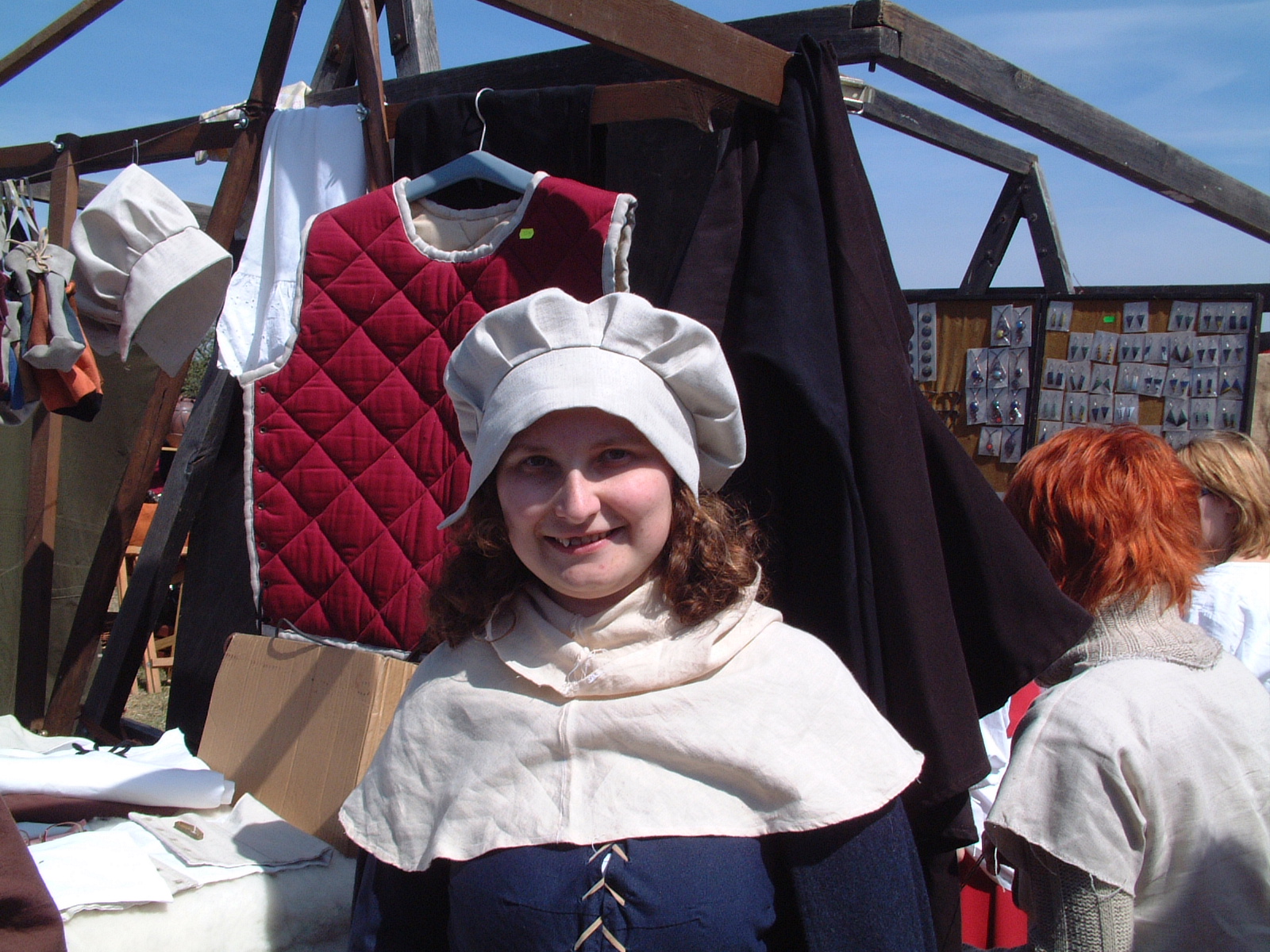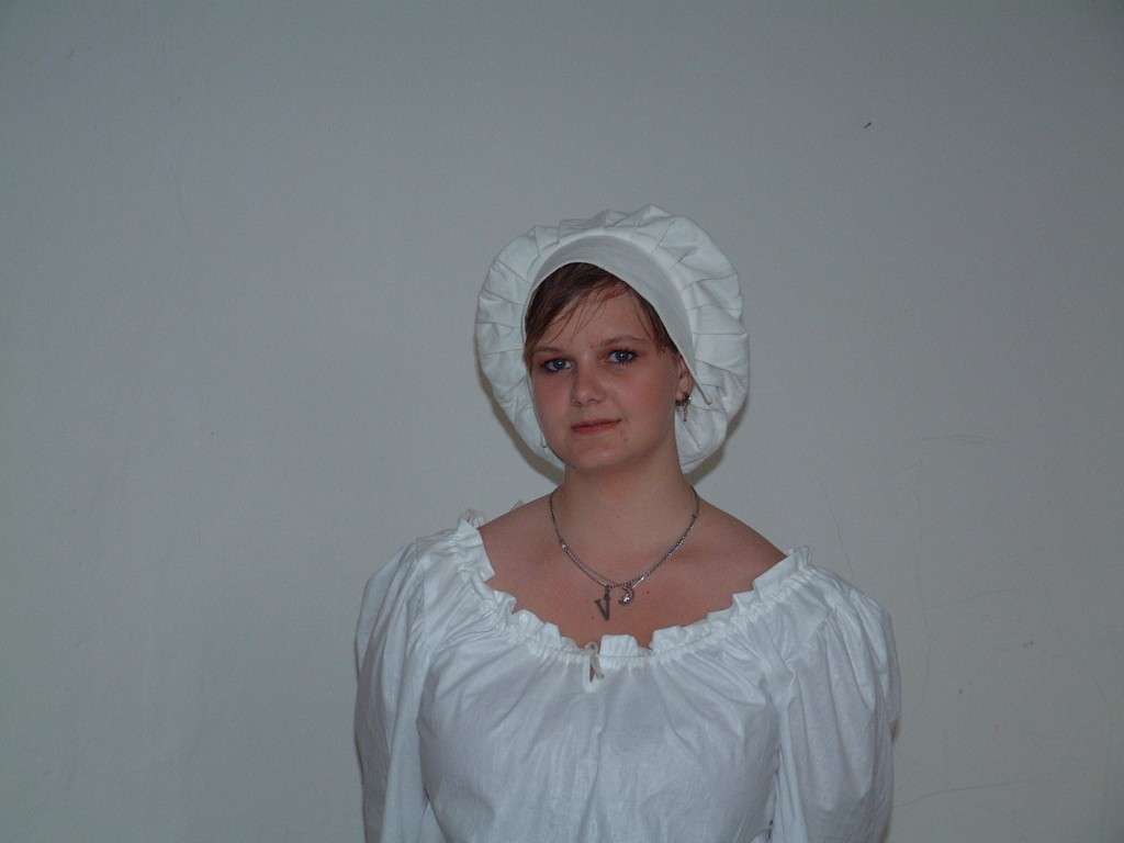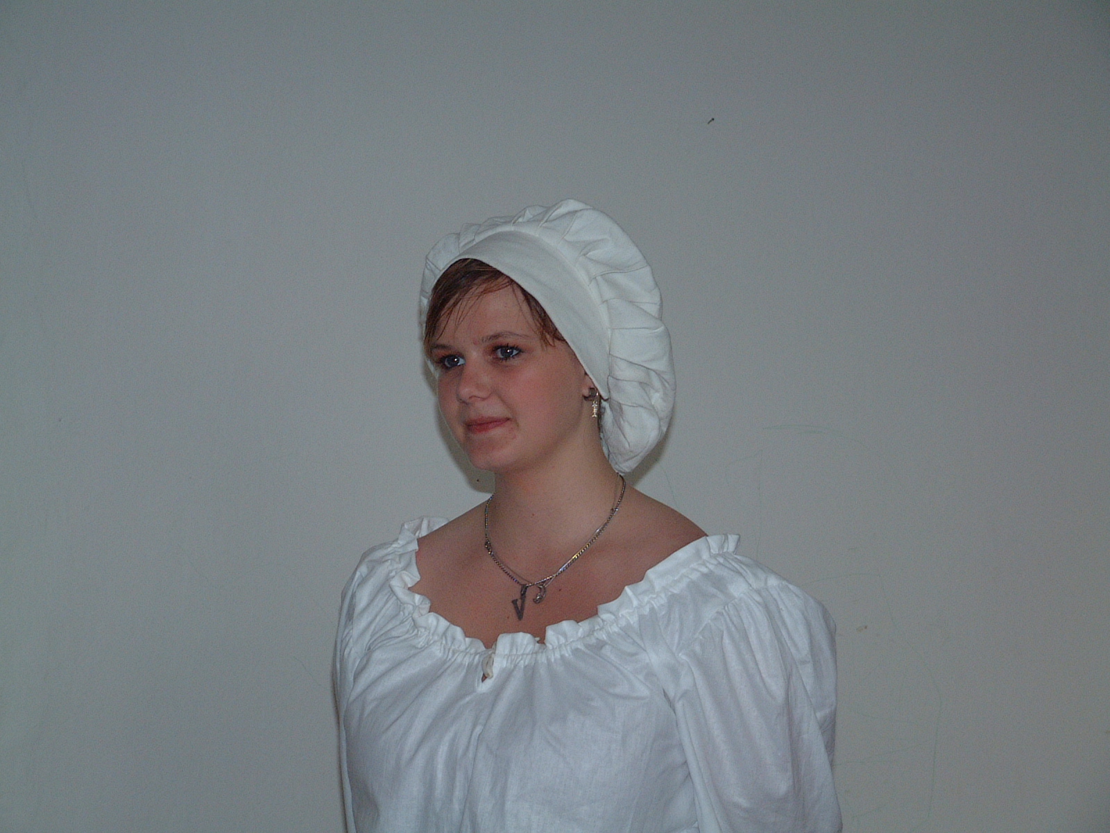 Čepec skládaný, vzadu vázaný na tkanici nebo do gumy.