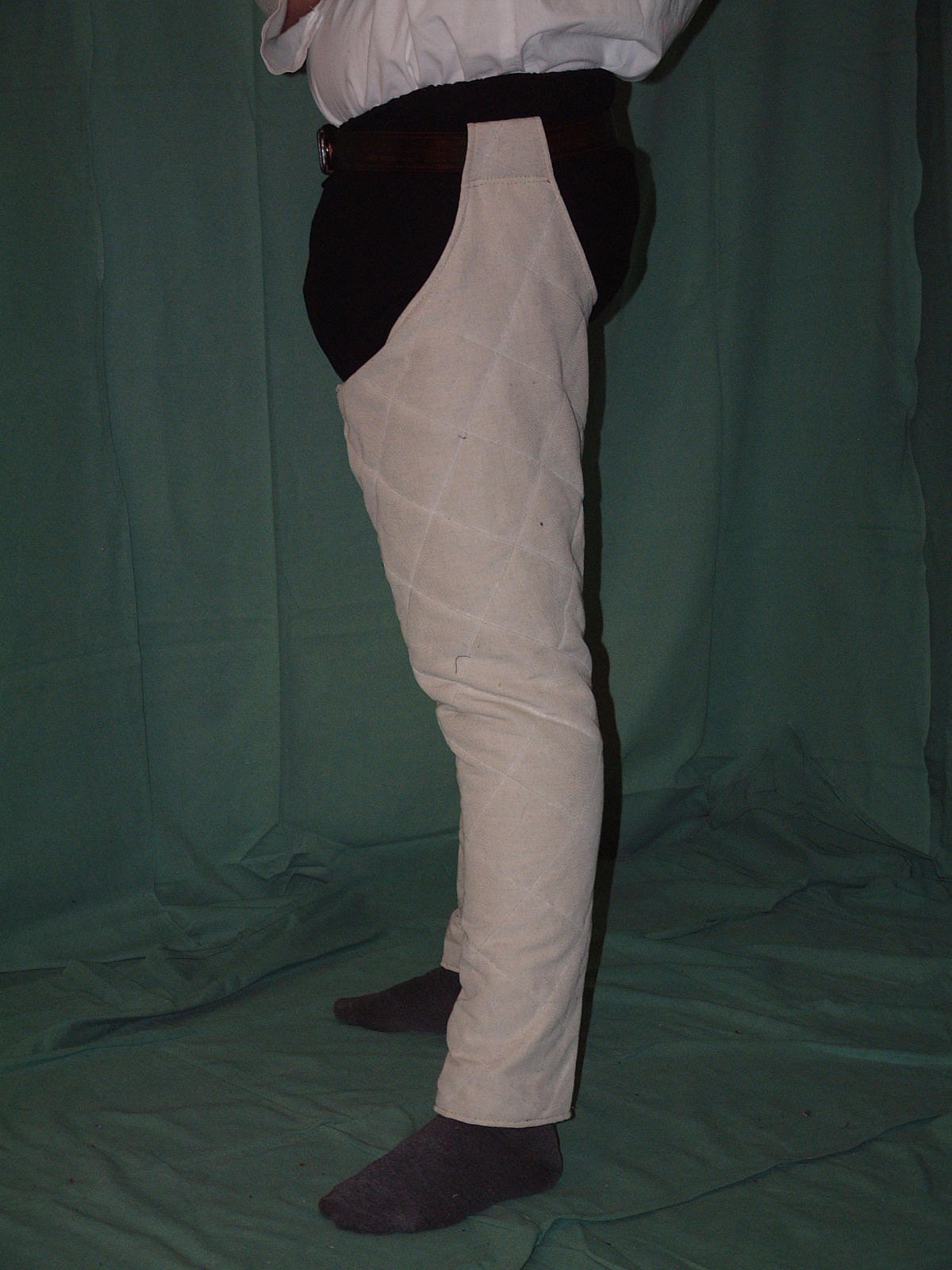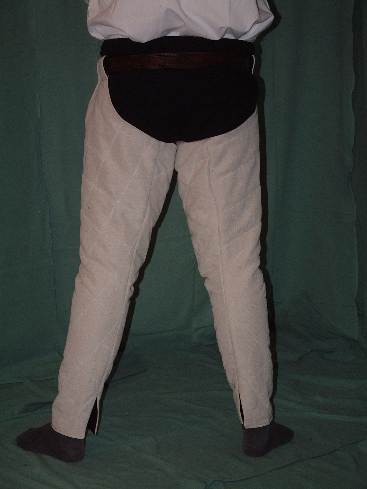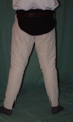 Silnější se nedají ohýbat v koleni. Prošité do kosočtverců nebo do pruhů. Upevňují se na pásek.
